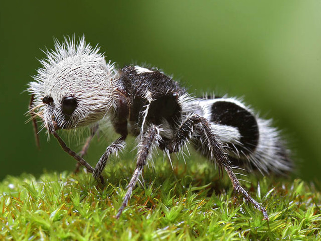La fourmi panda (Euspinolia militaris), qui est en fait une guêpe sans ailes “déguisée” en fourmi, native du Chili.