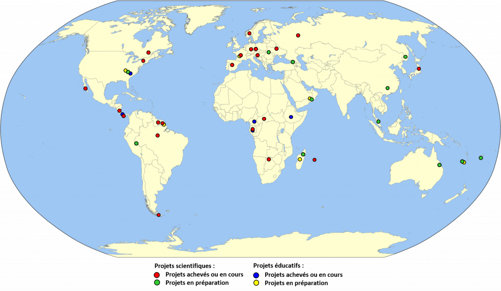 Répartition géographique des projets du programme « La Planète des Espèces » achevés, en cours ou en préparation