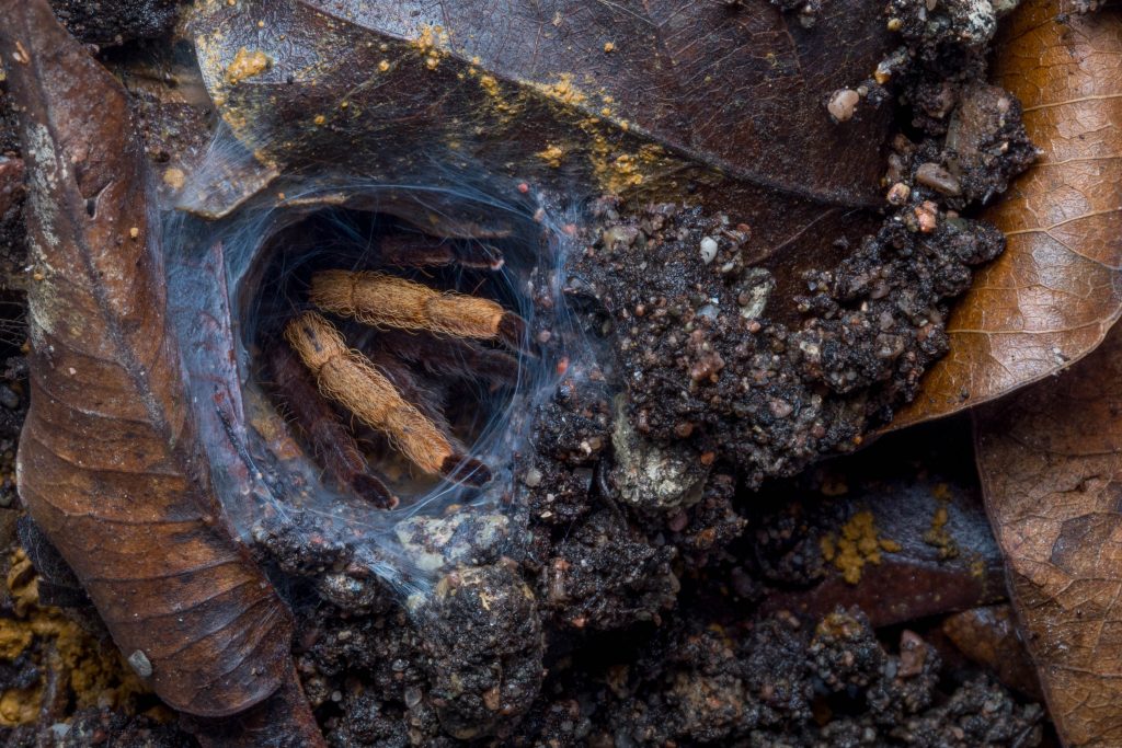 Cette mygale du genre Guyruita est une nouvelle espèce pour la science, ce qui est exceptionnel pour un genre ne contenant jusque-là que cinq espèces. Elle constitue également un nouveau genre pour la Guyane. C’est une mygale de petite taille, son corps sans les pattes mesurant moins de 3cm. Elle est seulement connue de sa région de découverte et semble être assez répandue sur ce territoire. Néanmoins son comportement craintif et le fait qu’elle vive dans un terrier dont l’entrée est très discrète font que les observations sont plutôt rares. Une fois le terrier repéré, la vue des deux pattes blanches ne laisse guère de doute quant à l’identité de l’occupant, son pattern de coloration étant unique au monde